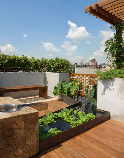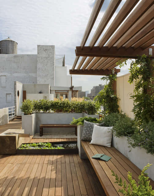 Eksplorasi Vertical Gardening: Manfaatkan dinding vertikal untuk menanam tanaman dan membuat desain taman atap lebih menarik. Vertical gardening tidak hanya hemat ruang, tetapi juga memberikan sentuhan estetika yang unik.