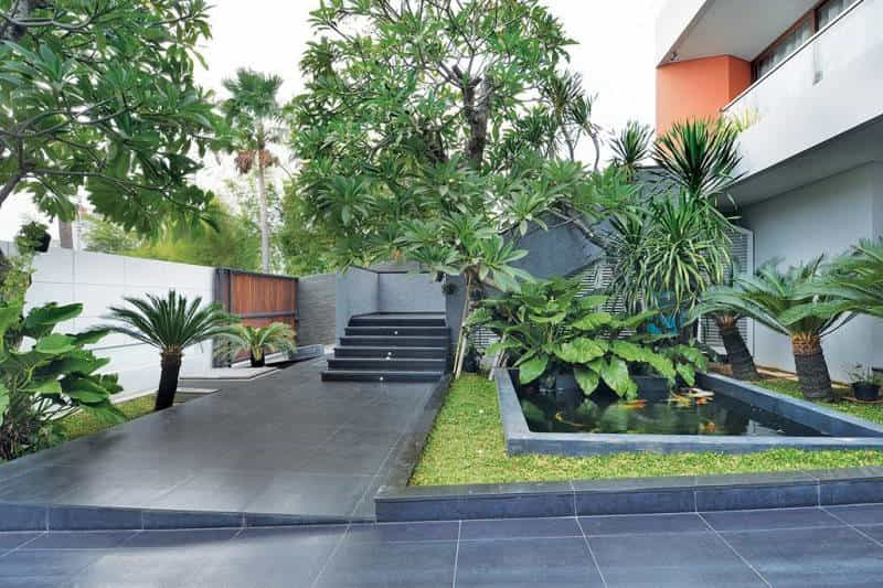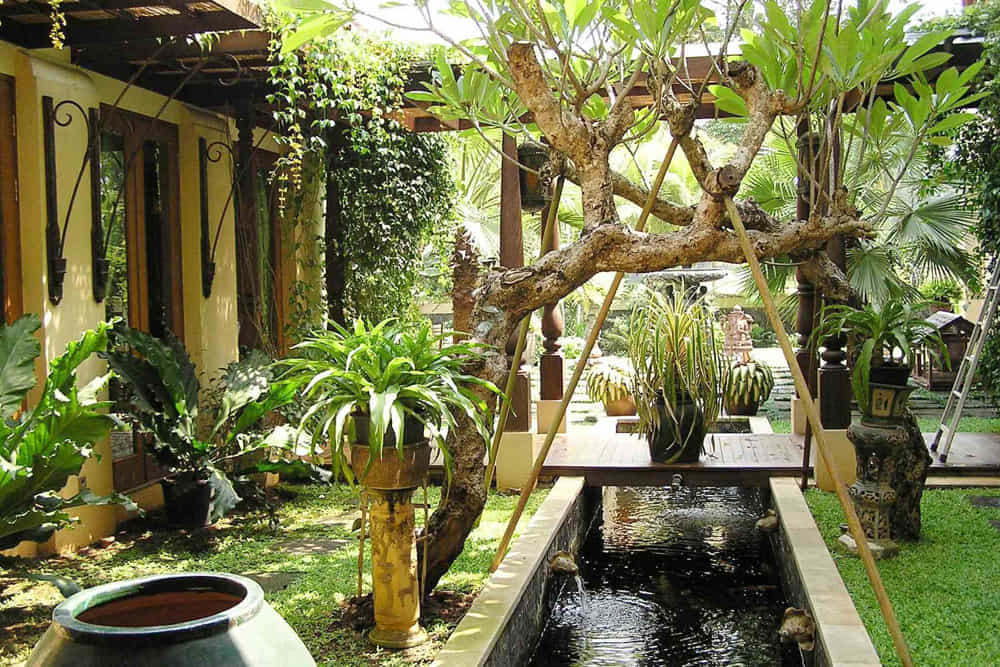 - Tambahkan elemen air seperti kolam atau air terjun mini. Air merupakan unsur penting dalam desain taman Bali, memberikan nuansa yang menenangkan dan menyegarkan.