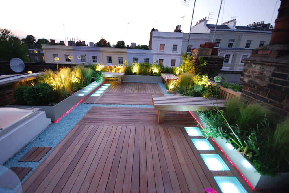 Pencahayaan yang Tepat: Rancang sistem pencahayaan yang menyeluruh untuk taman rooftop Anda. Gunakan lampu-lampu taman, string lights, atau lampu dinding untuk menciptakan atmosfer yang menyenangkan di malam hari.
